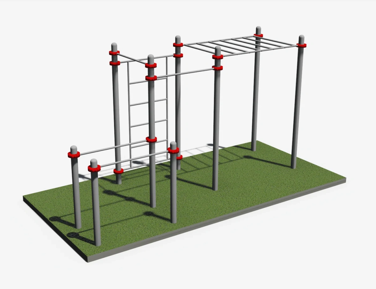 Два турника разноуровневых, брусья, шведская стенка и рукоход
