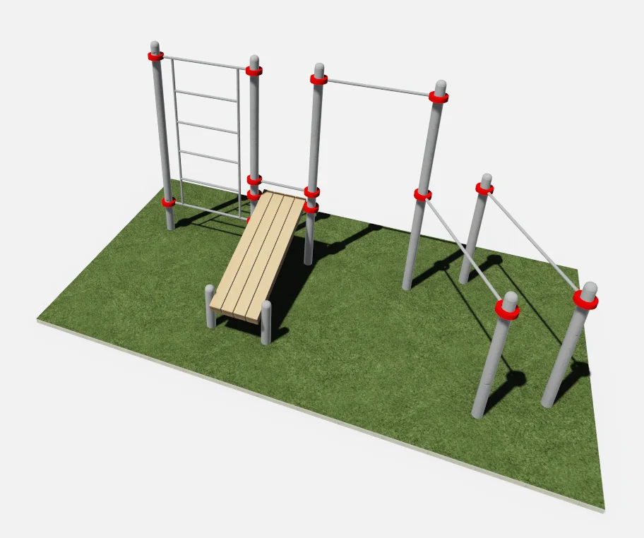 Составляющими данного комплекса являются шведская стенка, скамья для пресса, турник и брусья классические.