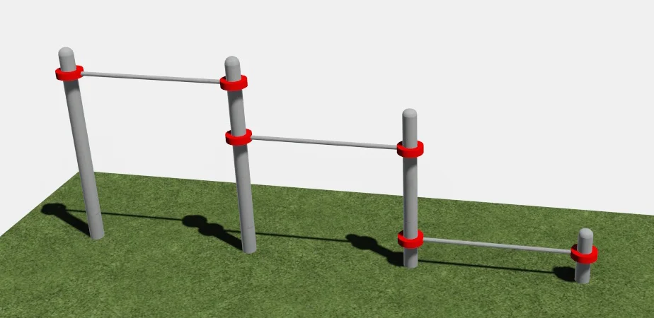 Турник тройной предназначен для отжиманий и подтягиваний. Высоту перекладин можно регулировать.
