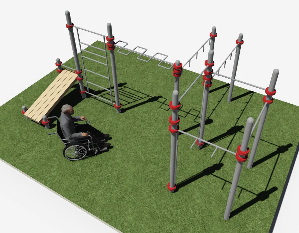 Комплекс Воркаут для инвалидов-колясочников 6м×3,5м×2,6м