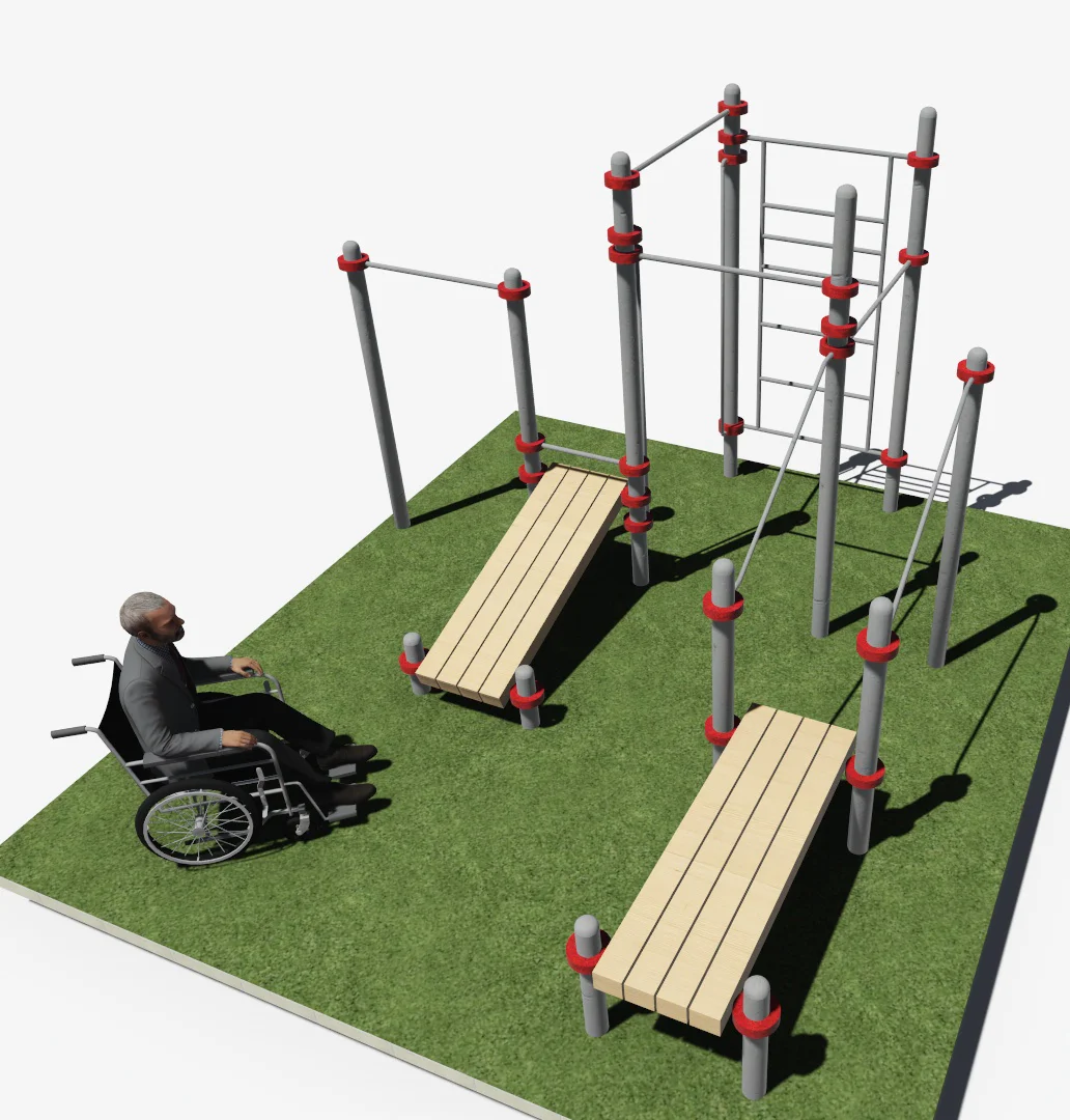 Комплекс Воркаут для инвалидов-колясочников 4,1м×5,1м×2,6м